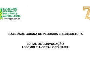 O Presidente da Sociedade Goiana de Pecuária e Agricultura – SGPA, no uso das atribuições estatutárias convoca os senhores associados para participarem da...